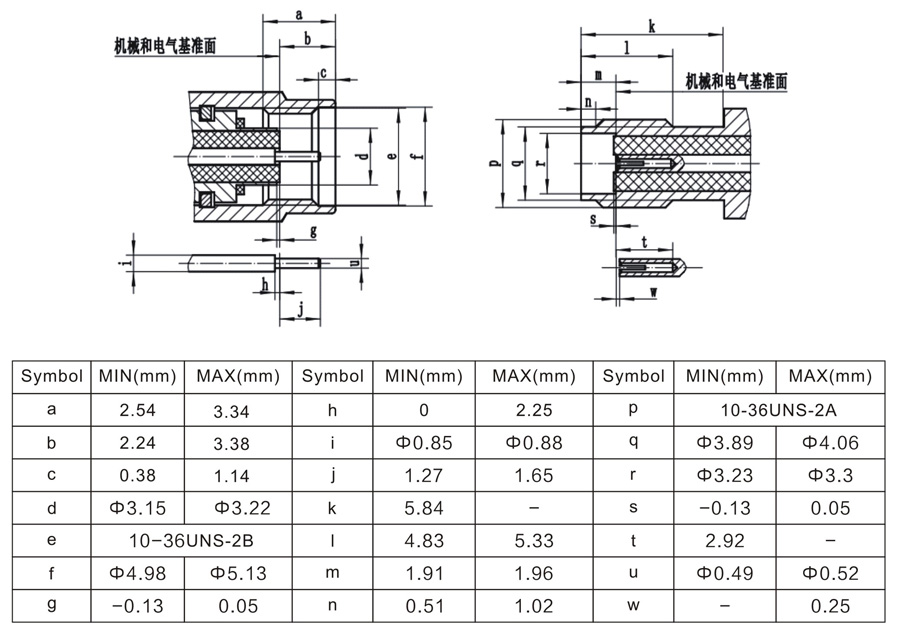 SSMA射频同轴连接器的外形及结构特点类似SMA系列的设计。具有螺纹连接机构,其外导体内径只有2.23mm,工作频率可达40GHz,可供毫米波领域电子设备和仪器的射频回路中选用。我公司生产的SSMA系列产品均符合IEC169-1IEC169-18标准。