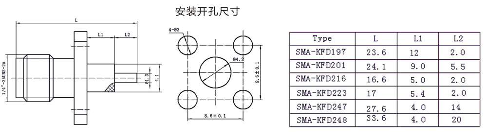 SMA系列射频同轴连接器出现于20世纪六十年代。具有螺纹连接结构,适用在无线电设备和电子仪器的射频回路中,连接射频电缆、半柔、半钢射频电缆。最大可用频率由所连接的同轴电缆的种类所限定。微波场合的应用主要表现在从同轴电缆到波导管的转换,以及微波传输带印刷电路板迹象的转换。我公司生产的SMA系列产品都符合GJB681(MIL-C-39012)规范。但个别产品规格也会在规定的范围内有所变化。