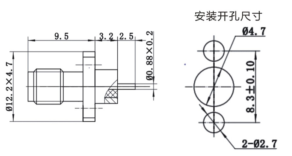 SSMA射频同轴连接器的外形及结构特点类似SMA系列的设计。具有螺纹连接机构,其外导体内径只有2.23mm,工作频率可达40GHz,可供毫米波领域电子设备和仪器的射频回路中选用。我公司生产的SSMA系列产品均符合IEC169-1IEC169-18标准。